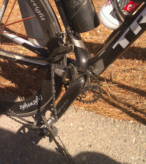 CAMINO DE ALMERIA TUVIMOS EL PERCANCE DEL DIA,TRILLO QUE VENIA EN LA GRUPETA SE QUEDO CON EL PLATO PEQUEÑO Y EL GRANDE EN EL AIRE, SIN TORNILLOS, TODOS FUERA DE GOLPE COMO PODEIS VER EN LA FOTO DE MAS ABAJO, COMO CONOCIAMOS QUE EL GRUPO DE LA ROTONDA VENIA MAS ATRAS Y LLEVAN COCHE DE APOYO SE LES AVISO Y VINIERON A RECOGERLO,GRACIAS POR EL DETALLE.